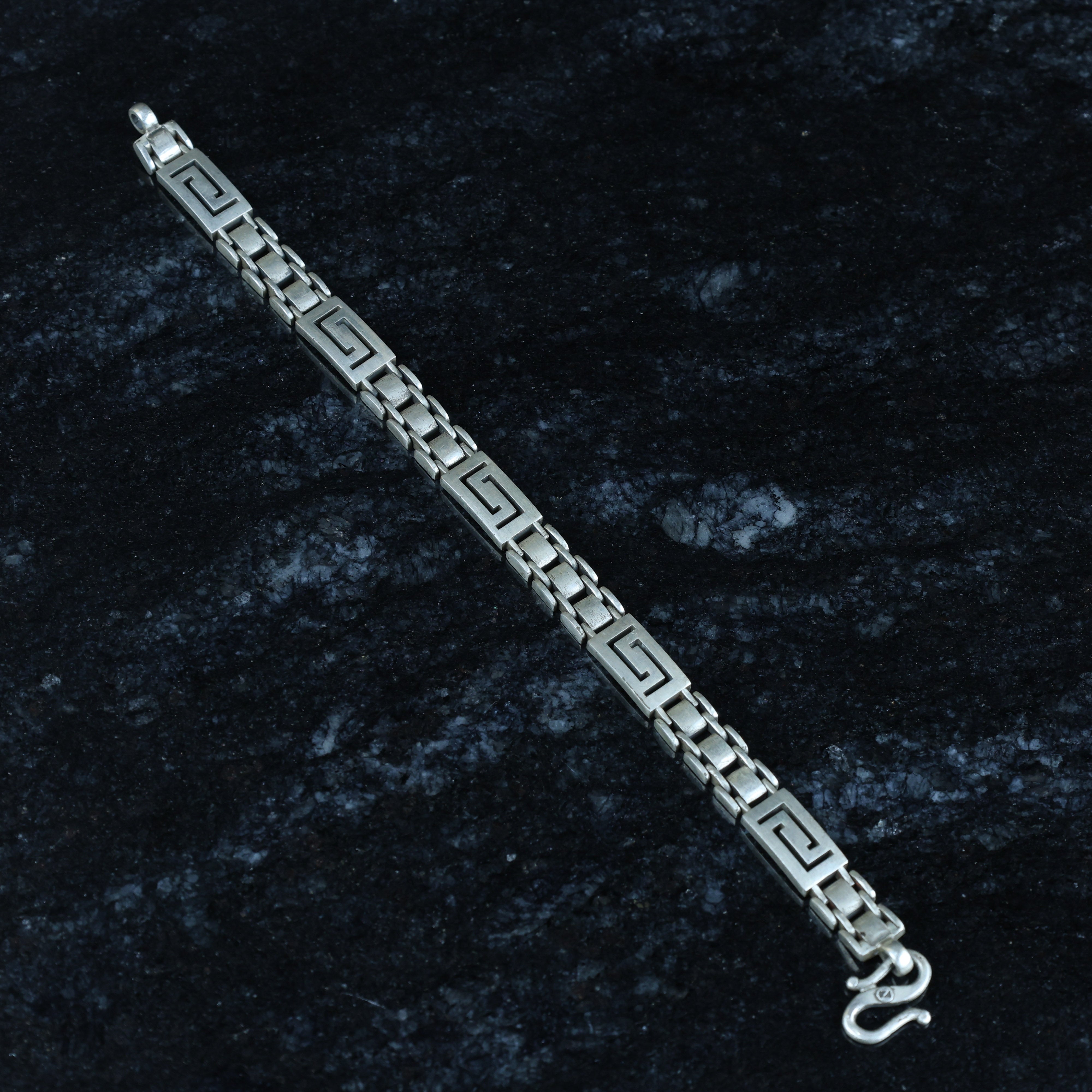 A sleek 925 sterling silver flexi‑strap bracelet inspired by the fluid motion of whispering tides. The design features smooth, interlocking strap segments that offer a comfortable, flexible fit and a modern, oceanic vibe. Ideal for men who love subtle elegance with an edge of movement.