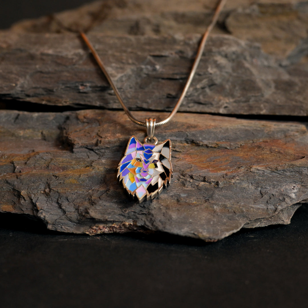 Introducing our "Wild Spectrum Silver Wolf Pendant" – a captivating fusion of strength and vibrancy.