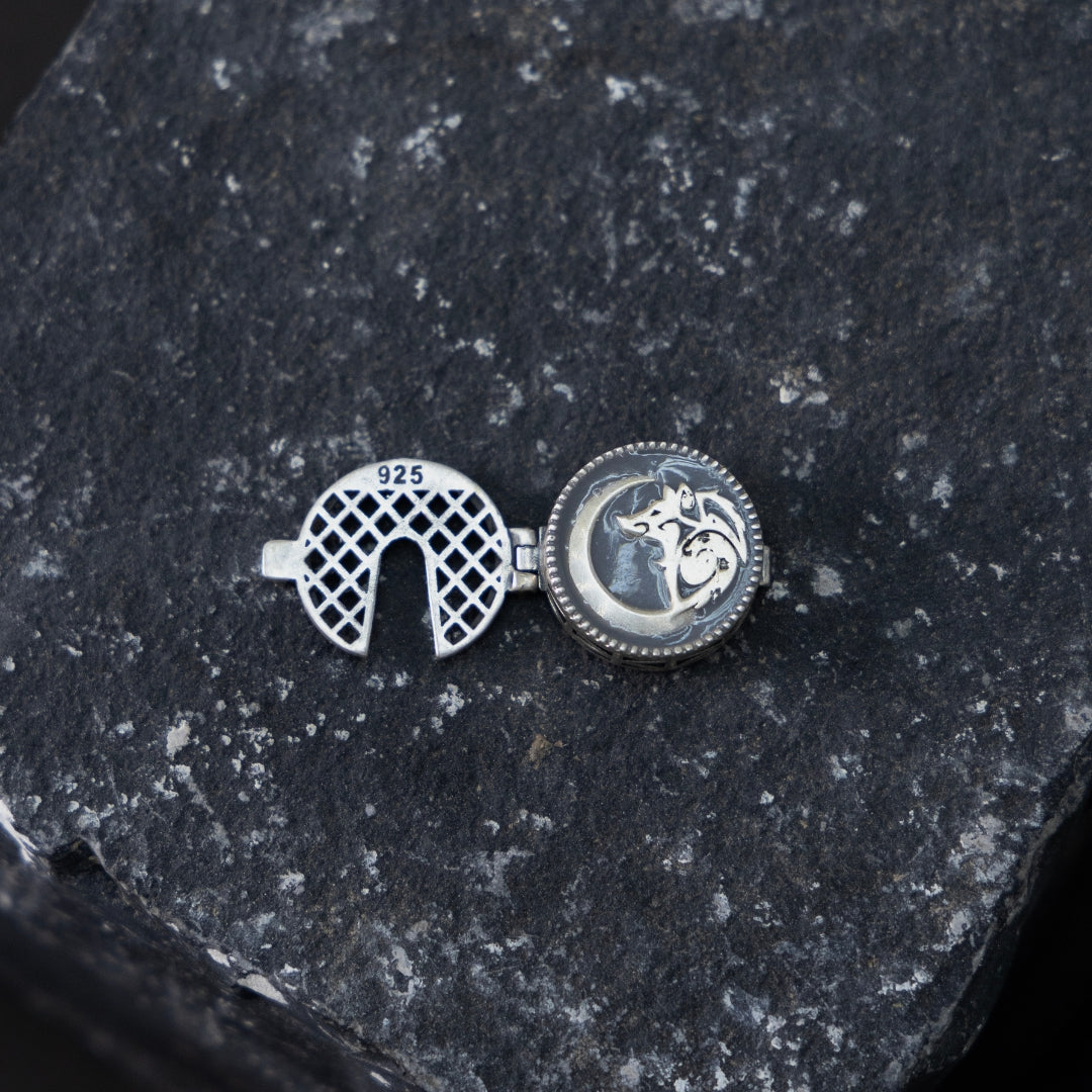 Elevate your style with the Wolf's Moon Button Clip, featuring a striking design of a wolf gazing up at the moon. Crafted from high-quality silver, this button clip combines rugged elegance with sophisticated charm.